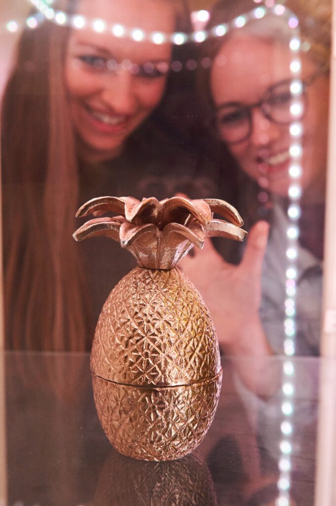 *Der oben angegebene Schwierigkeitsgrad ist bei fünf Personen. Wir empfehlen den Raum Goldene Ananas mindestens zu dritt oder zu viert zu spielen. Wenn ihr zuzweit seid, dann bucht den Raum Polizei Akademie (ausser ihr seid Escape-Room-Cracks).